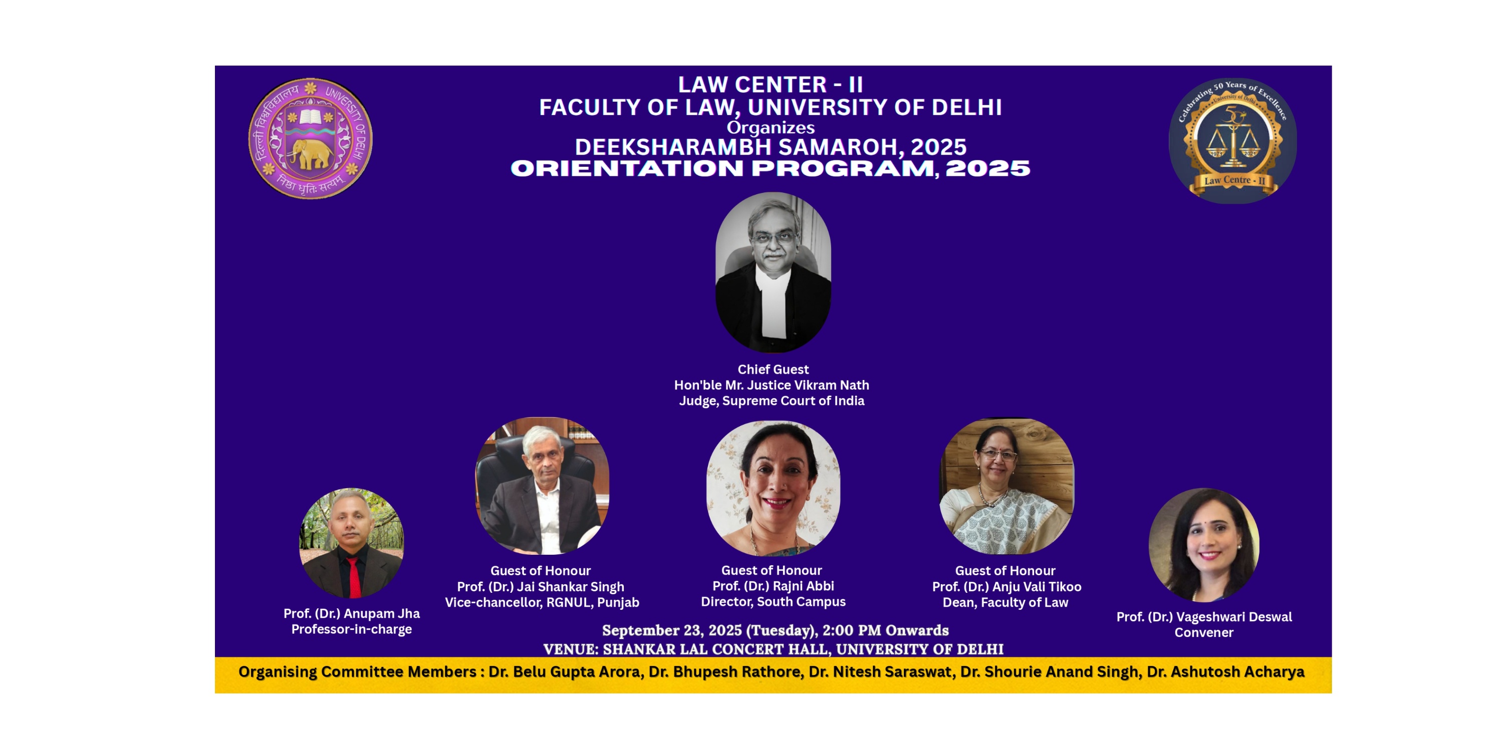 Law Centre-II is a premier institution and is known for its qualitative teaching, research and other co-curricular and extra-curricular activities. It is one of the best institutions in the country which imparts three year LL.B. program. To promote student activities at the Centre, a number of committees have been constituted. These committees include Moot Court and Debate Committee, Seminars, Conferences and Extension Lectures, Journal Committee, Legal Aid Committee, Placement Committee and Alumni Committee. There is an active participation of students in these committees. The teacher members and students volunteers organize several activities on a regular basis throughout the year. The S.K. Puri Memorial Moot Court Competition of Law Centre-II “JUSTIFIED” is an annual activity in which teams from all parts of the country participate. The Seminars and Lectures Committee apart from organizing seminars, conferences and workshops, organizes lectures of legal scholars from all over India and abroad.