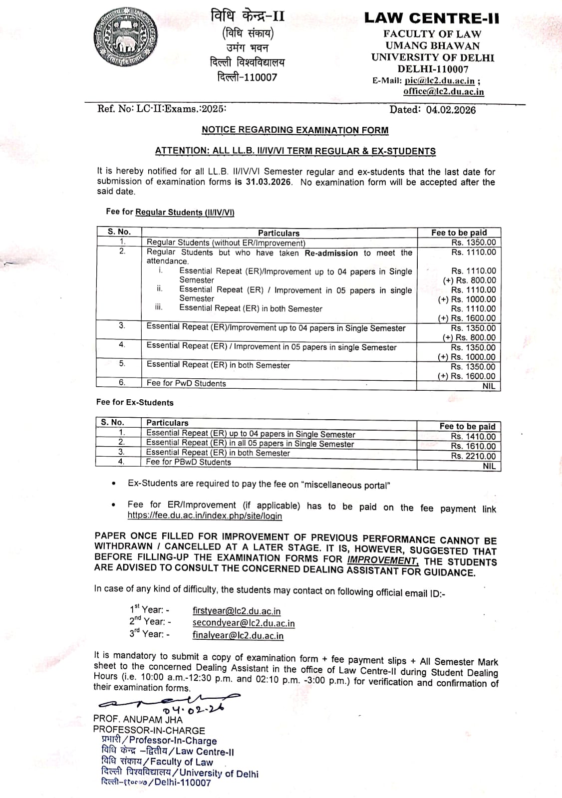 - Filling up of Examination Form for LL.B. Students for Session December 2025